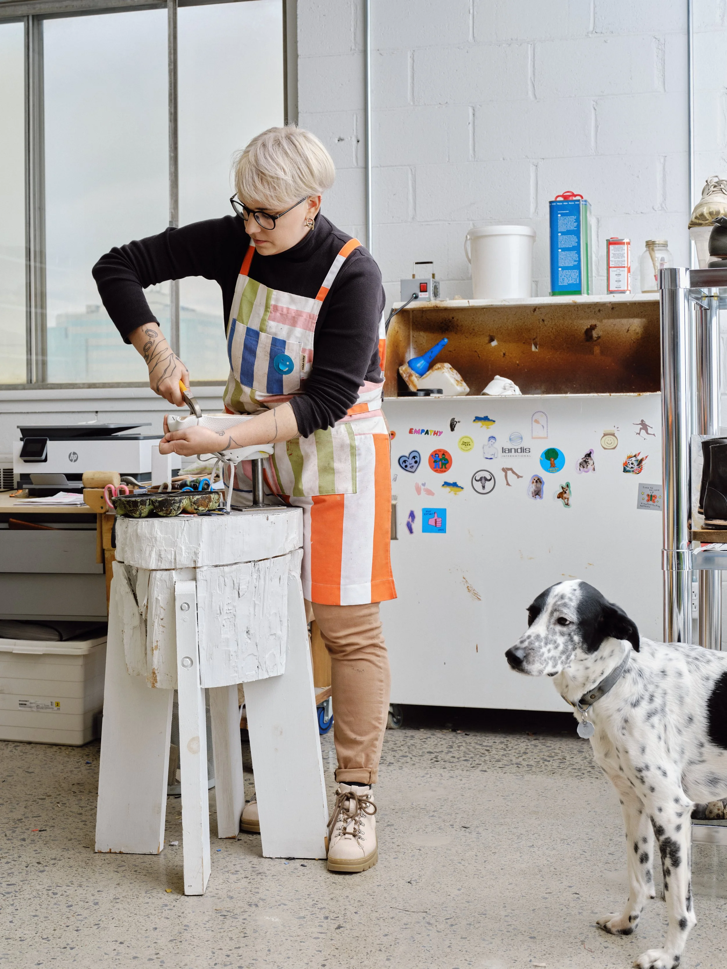 Après quelques années difficiles et d’incertitude économique, je suis indécise de continuer la fabrication de chaussures. Je ne dis pas que c’est une fin décisive, mais bien une pause afin de recentrer mes efforts sur la rentabilité de mon entreprise. La fabrication de chaussures comporte son lot de pression financière et de défis techniques: lourd inventaire de composantes pour offrir toutes les pointures, développement de nouveaux modèles très long et coûteux, fabrication sans machinerie industrielle comporte une centaine d’étapes et demande une bonne force et endurance physique….